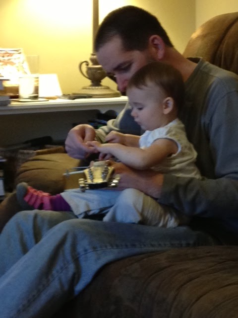 One of Piper’s favorite things to do when she comes to visit is to play Brian’s mandolin. As you can see, she holds the flat pick just right and plucks away like Brian shows her. My only regret in this picture is that you can’t see the new curl that’s cropped up. A-dorable!