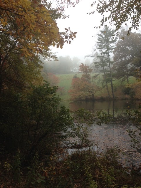 This past weekend we took a hike around the front lake, the one that sits at the bottom of the hill, below his home. The crimson-threaded leaves embraced the lake as if they were saying a final farewell, at least for now.