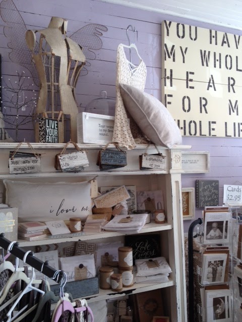 Sheri, along with her staff, go out of their way to make you feel right at home in their cozy cottage-like setting. Purple-planked walls, Scripture quotes on pillows, wooden canvases, etc. As the young ladies lovingly wrapped my purchases in lilac colored tissue paper, one of them smiled and shared how they’d also tucked in a bag of fresh lilac for my birthday. Yes, this is my kind of place.