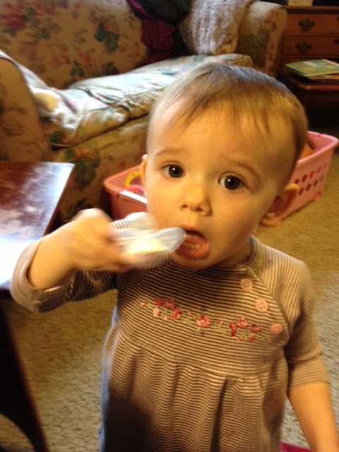 One of Piper’s favorite things to do when she comes to visit is to play Brian’s mandolin. As you can see, she holds the flat pick just right and plucks away like Brian shows her. My only regret in this picture is that you can’t see the new curl that’s cropped up. A-dorable!