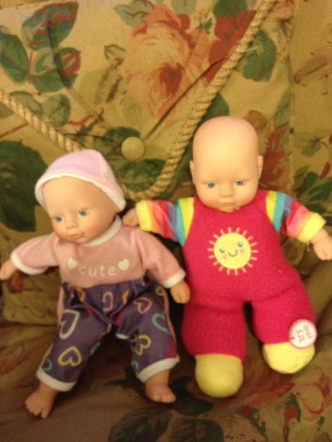 Two of the homeliest and cheapest baby dolls Target had to offer.