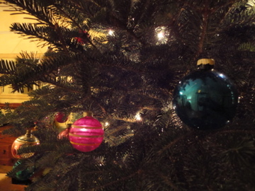 (I’m teaching Piper colors via vintage Shiny Brites!)